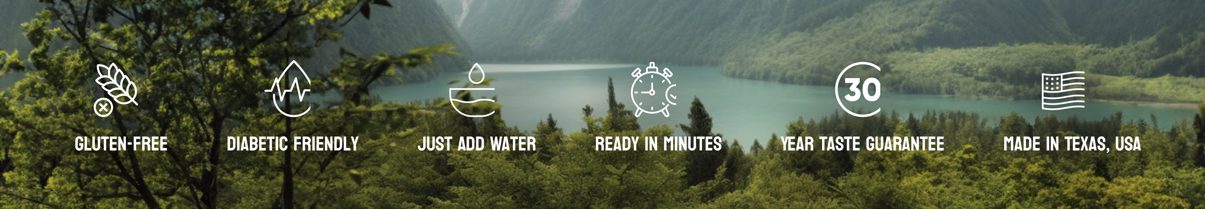 Crafted using the finest ingredients to complement our Caudle Family’s secret recipes, we go to great lengths to ensure exceptional quality. Our gourmet meals—loved by thousands of adventurers and their families—include breakfast, entrees, soups, fruits, and dips to cover all your needs.